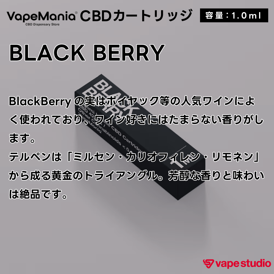BlackBerryの実はポイヤック等の人気ワインによく使われており、ワイン好きにはたまらない香りがします。テルペンは「ミルセン・カリオフィレン・リモネン」から成る黄金のトライアングル。芳醇な香りと味わいは絶品です。