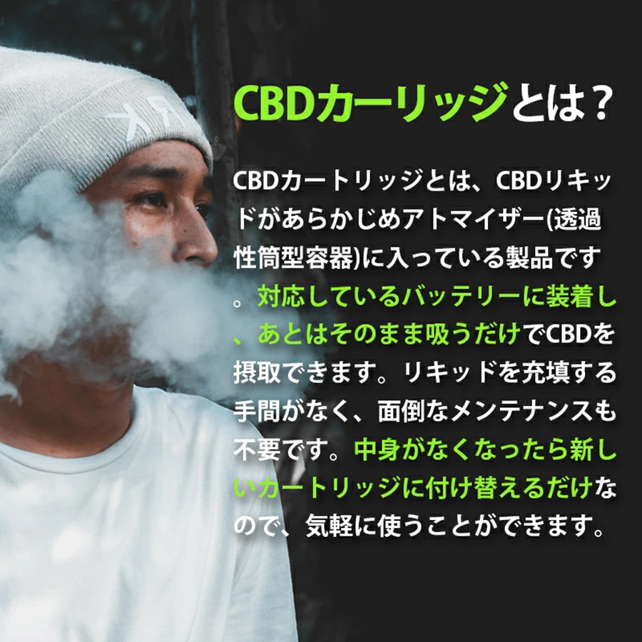 また、CBD成分を含むリキッドは通常のリキッドに比べコイルが焦げやすくなるため、吸入する際はCBD成分が直接肺の毛細血管から体内に吸収されるよう、ゆっくり吸い込んで蒸気をしばらく肺の中で溜めてから吐き出すことで.コイルの焦げ予防と効果が増長が期待できます。