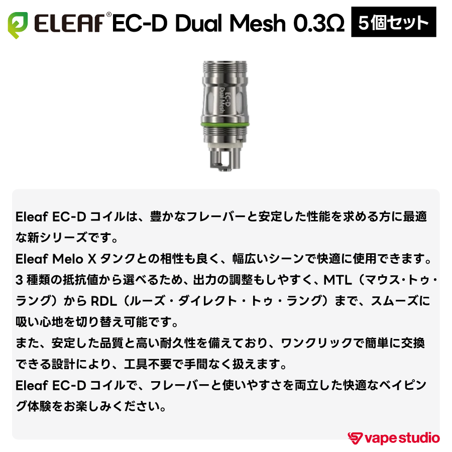 Eleaf EC-Dコイルは、豊かなフレーバーと安定した性能を求める方に最適な新シリーズです。